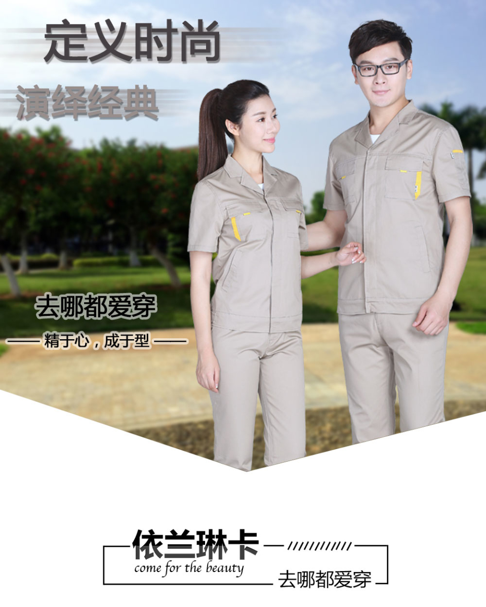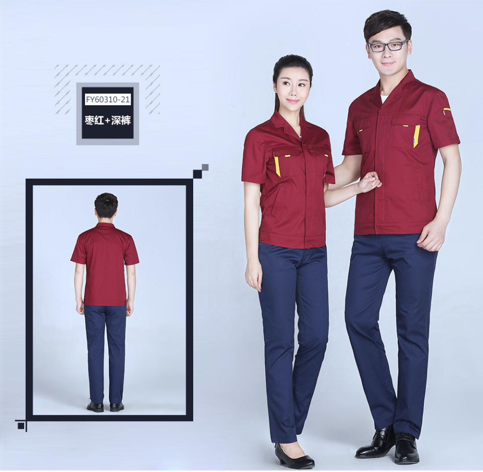 - 標簽:時尚夏季滌棉細斜短袖工作服FY603