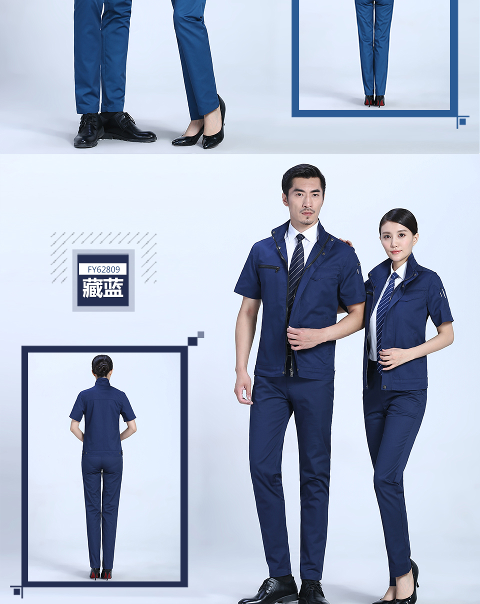 創意拉鏈款夏季滌棉細斜短袖工作服FY28