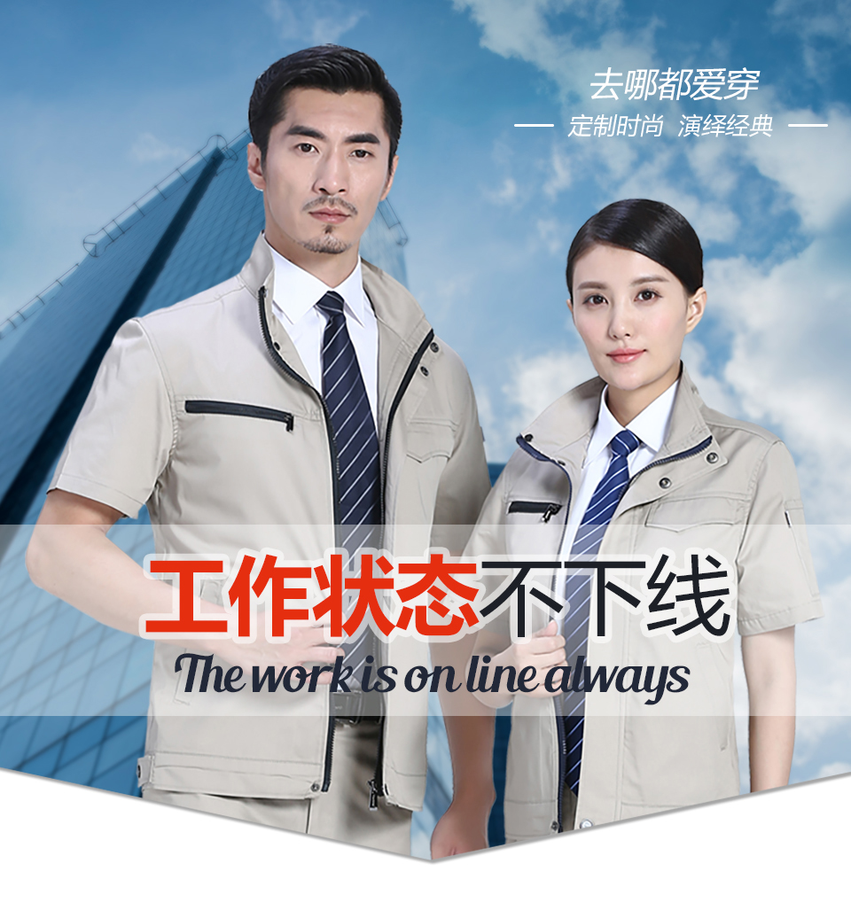 標簽: 創意拉鏈款夏季滌棉細斜短袖工作服FY28